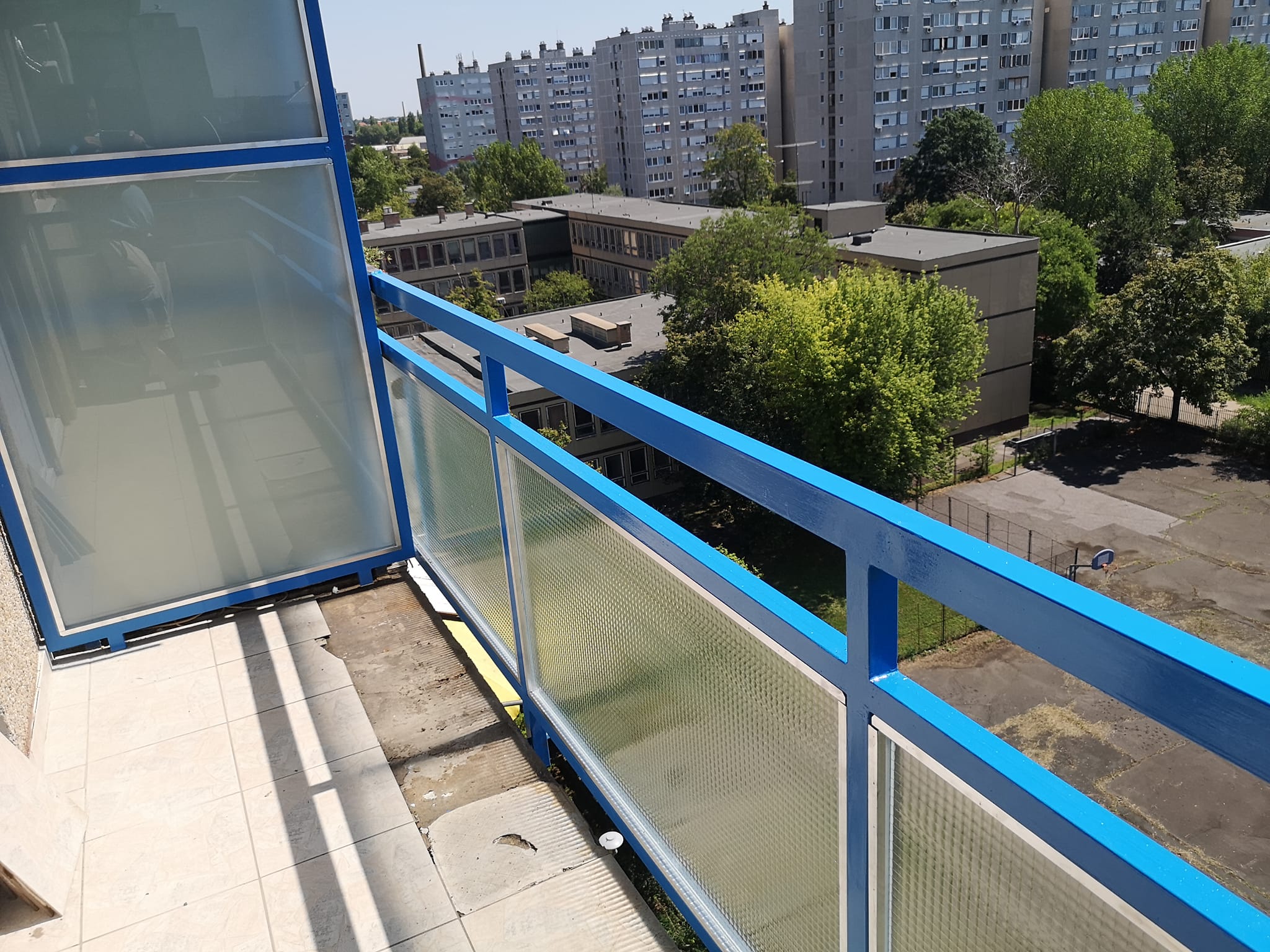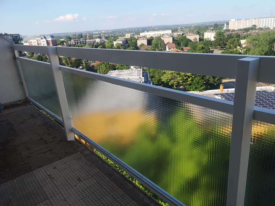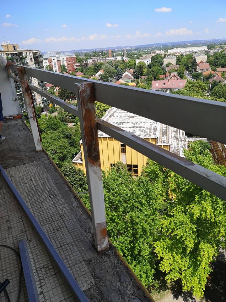 Erkély felújítás folyamán ha nagyon korrodált a erkély vasszerkezete akkor lakatosaink újragyártják az erkély vasszerkezetét, amit felszerelünk, festés az önök által kiválasztott színnel, üvegezés fehér dróthálós üveg vagy 4/4 matt biztonsági üveg.